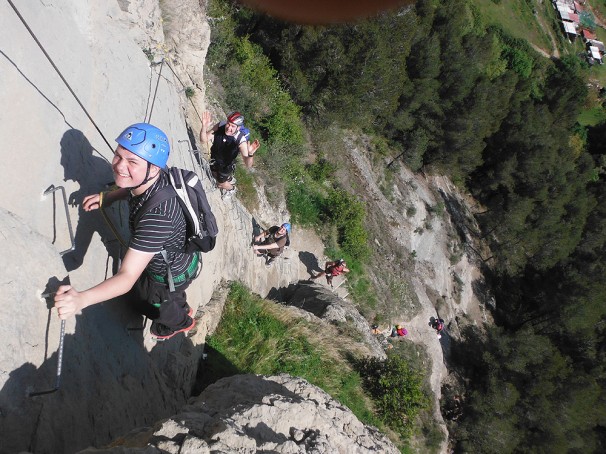 Klettersteige heißen auf Spanisch „ferrata“. Es kommt von dem alten spanischen Wort für Eisen, heute „hierro“. Also die Bügel und Stahlseile welche in den Fels getrieben wurden. Dies wird von Vereinen übernommen. Die Nutzung ist kostenfrei und zu 100 % auf eigene Gefahr! Es gibt dort auch keine Aufsichtspersonen. Gurte, Karabiner, gutes Schuhwerk und auf den meisten Strecken ein Helm sind wichtig. Außerdem sollte man sich niemals selbst überschätzen.